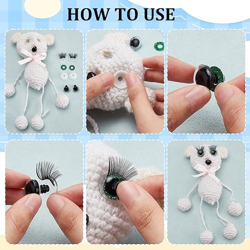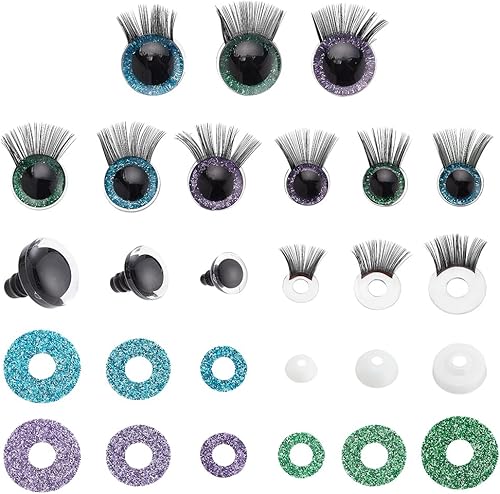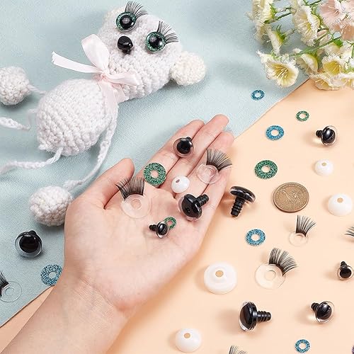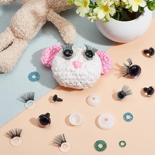 PH PandaHall 18 set Yeux de Sécurité à Paillettes 12/16/20 mm Yeux au Crochet avec Cils Artisanat Yeux D'Animaux Yeux en Plastique avec Rondelle pour Amigurumi Ours en peluche Animaux au crochet