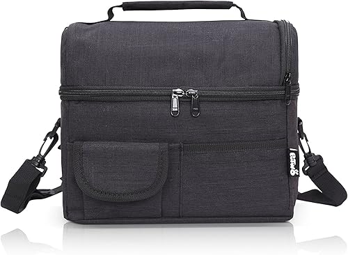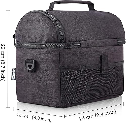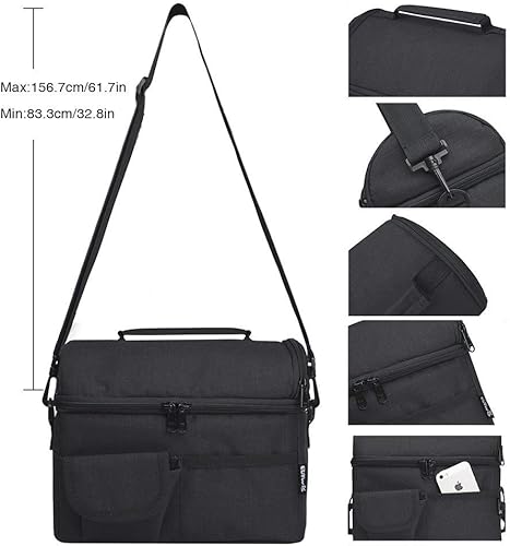 PuTwo Isotherme 8l Sac Repas Imperméable 2 Compartiments Grand Capacité Déjeuner à Bandoulière Détachable & Réglable pour Femme Homme Adulte Enfant pour Travail École (Noir)