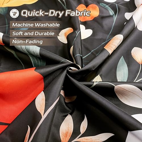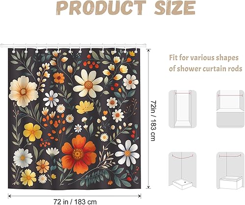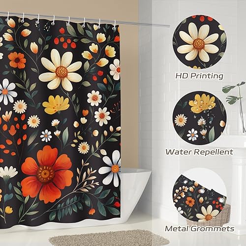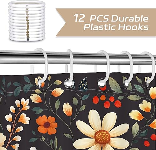 Dazzlewall Rideau de Douche Fleurs Noires Vintage 180x180cm, Rideau de Bain Style Ferme Campagnarde, Polyester Imperméable Anti-Moisissures avec 12 Crochets