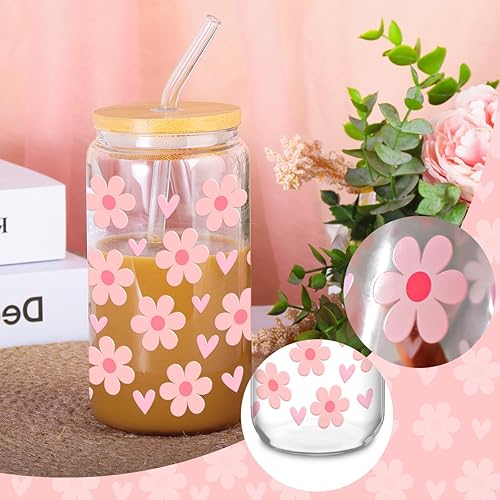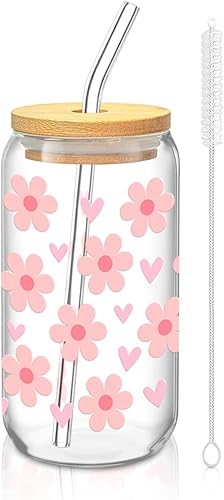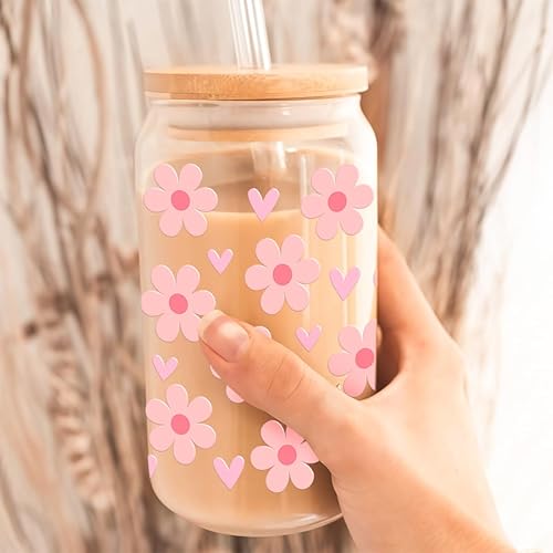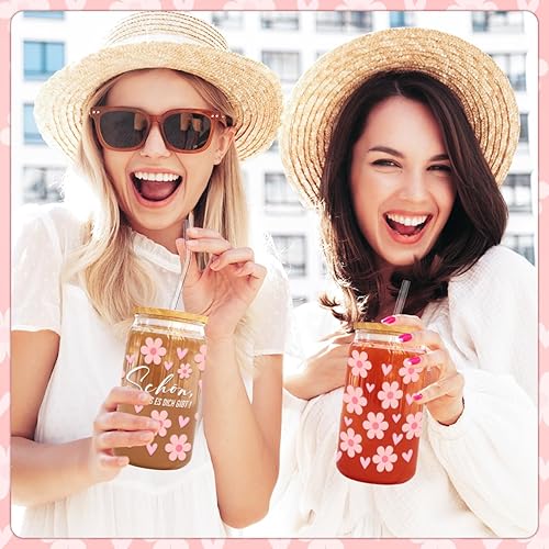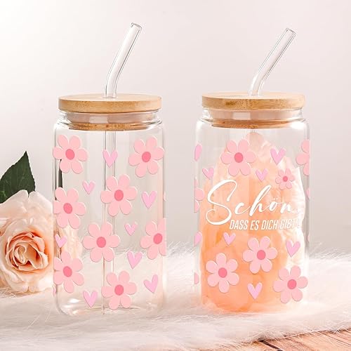 Verre avec Couvercle et Paille, 500ml Gobelet avec Paille, Verre Matcha, Verre avec Paille, Réutilisables Verre Smoothie Cocktail Café