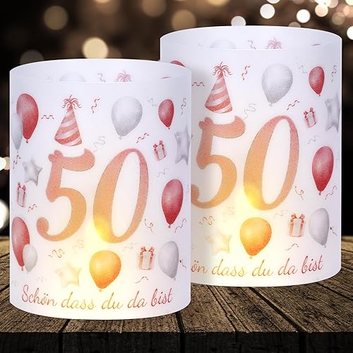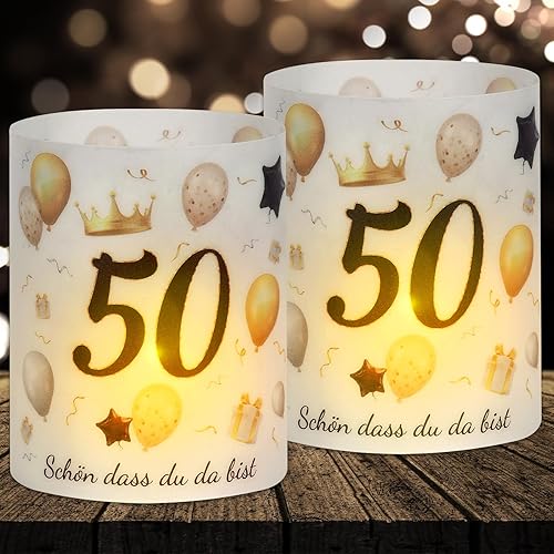 Lot de 16 photophores décoratifs de table pour 50e anniversaire, décoration pour homme et femme, photophores Happy Birthday, convient pour bougies chauffe-plat ou bougies