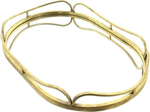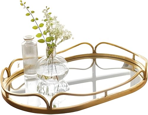 Dekoleidenschaft Plateau miroir doré 50 x 34 cm avec grande surface miroir en métal doré