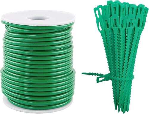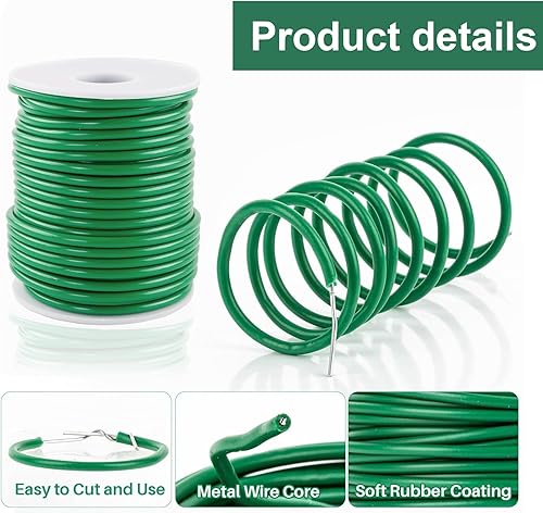 BDHYYM 3,5 mm x 20 m de fil caoutchouté pour plantes + 50 attaches pour plantes vertes, fil de liaison gainé, fil de jardin souple et épais, fil de liaison caoutchouté, pour stabiliser les plantes