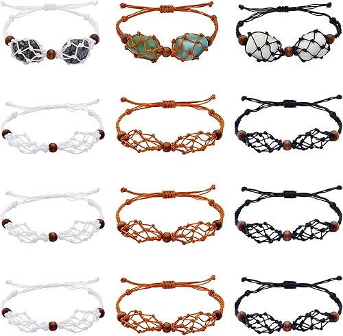 WEWAYSMILE 12 Porte-Bracelets en Pierre Vide, Bracelet Titulaire Cordon, Cordon Réglable Porte Pierre Vide Cristal, pour Fabrication Bijoux Bracelet Bricolage Collier Pierre (Sac Double Filet)