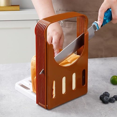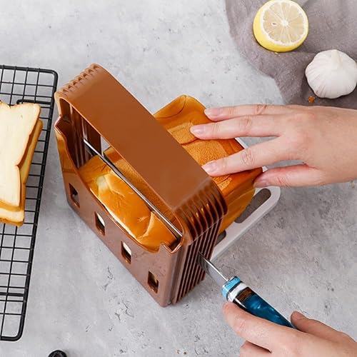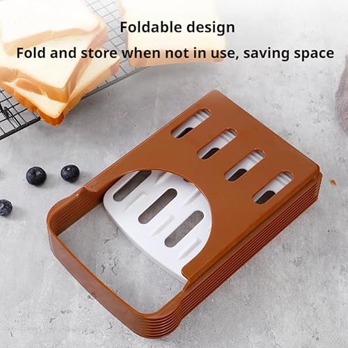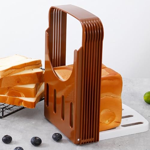 Trancheuse manuelle pliable et réglable à main, trancheuse à pain 2025, machine à pain multifonctionnelle, guide de tranchage de pain en plastique pour pain, rôti, sandwich (marron)