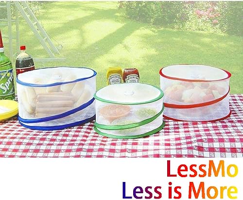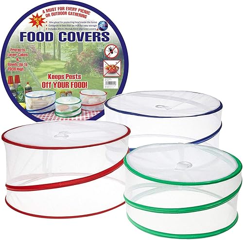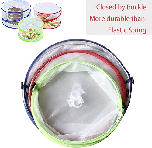 Couverture de nourriture, ensemble de 3 réutilisable pliable pop-up couverture de nourriture cuisine pique-nique en plein air barbecue insecte protecteur filet de maille, fermé par boucle