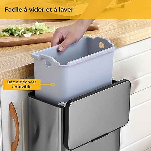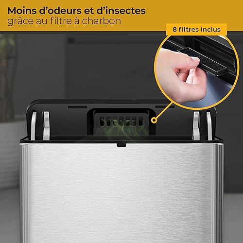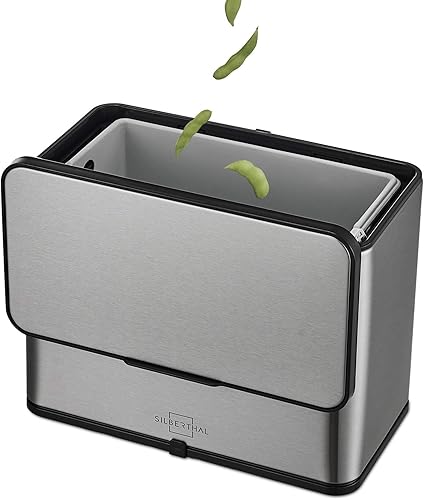 SILBERTHAL Petite Poubelle De Table INOX - 3 litres - sans Odeur Et Insectes - 8 Filtres - Bac Compost avec Couvercle