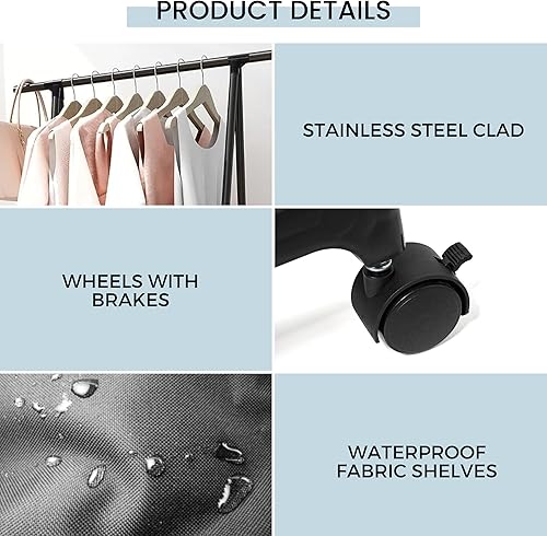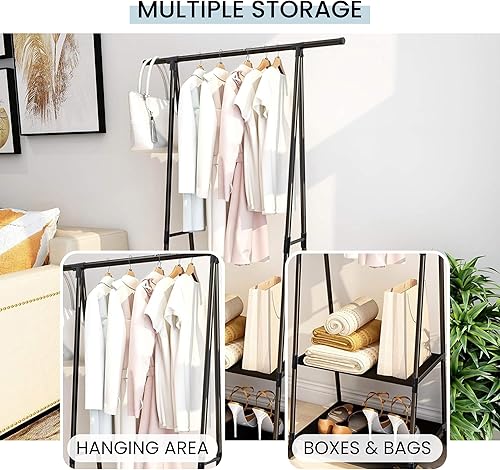 Porte-manteau Triangulaire avec Barre Supérieure et 2 Étagères en Tissu pour le Rangement Inférieur. Portant à Vêtements Indépendant et Résistant. Portemanteau pour Entrée, Couloir, Dressing.
