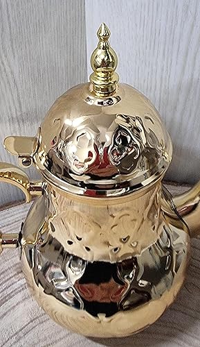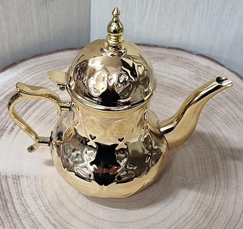 Théière arabe en acier inoxydable - Théière à induction avec filtre intégré et poignée authentique traditionnelle modèle gravé avec design classique arabe 24oz