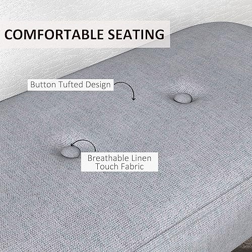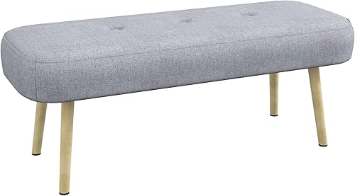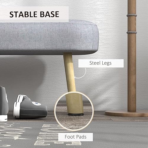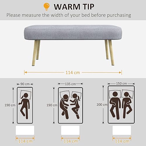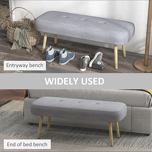 HOMCOM Banc de lit en tissu rembourré avec pieds en acier effet bois, banc pour entrée, salon et chambre à coucher, 114x38x45cm, gris