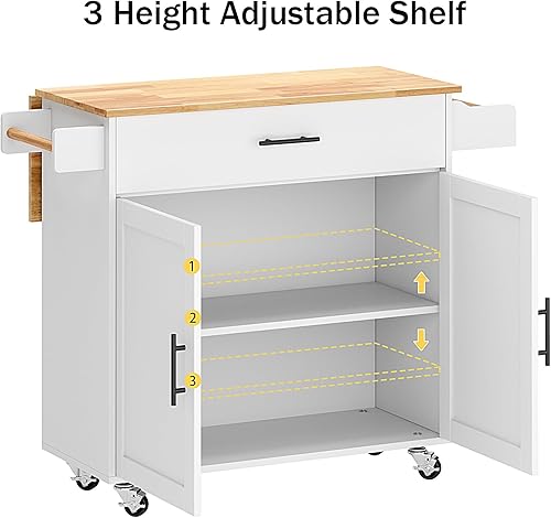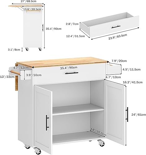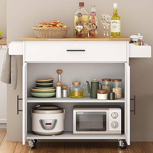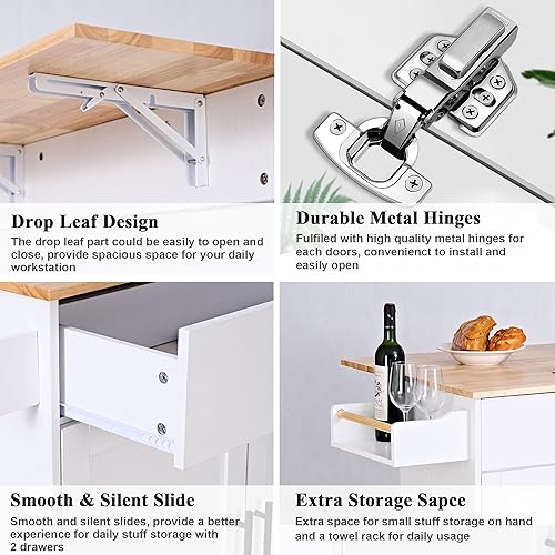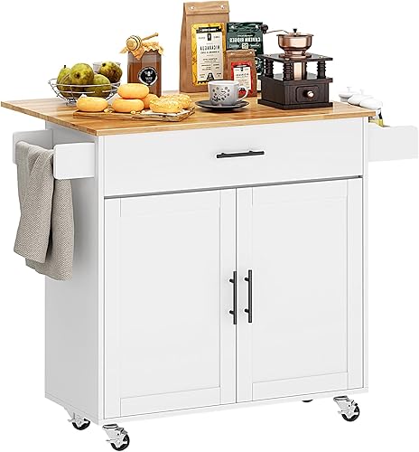 sogesfurniture Chariot de cuisine sur roulettes, îlot de cuisine mobile avec plateau de travail extensible, porte-serviettes et étagère à épices, chariot de cuisine avec grand tiroir, 120 x 39 x 90 cm