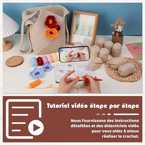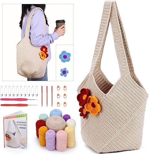 Kit de Crochet pour Débutants, Kit de Crochet pour sac à Bandoulière, Kit Crochet Debutant Complet, Kit Complet De Tricot De Crochet pour Adultes Débutants Crochet (Blanc)