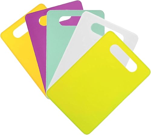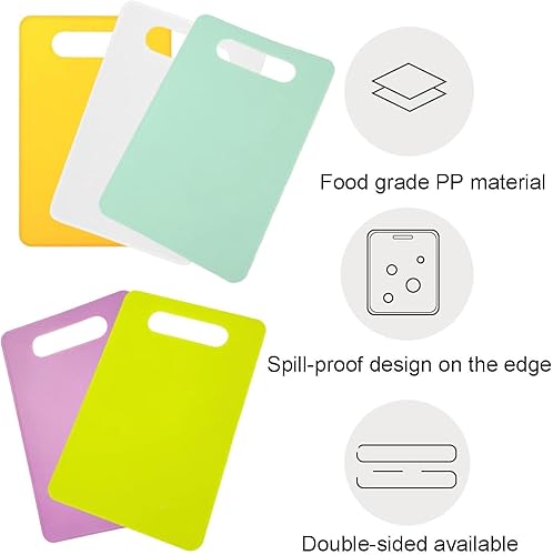 MINZHI Lot de 5 planches à découper en plastique avec poignée, tapis de découpe antidérapant pour légumes de cuisine, fruits, viandes