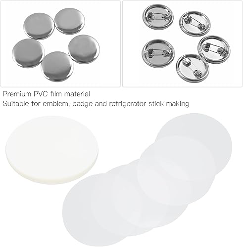 Film de Badge, Film de Protection Transparent Matériau Premium en PVC, 100pcs pour Boutons Broches, Badges et Aimant Réfrigérateur (32 mm)