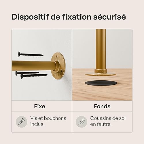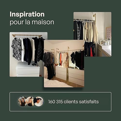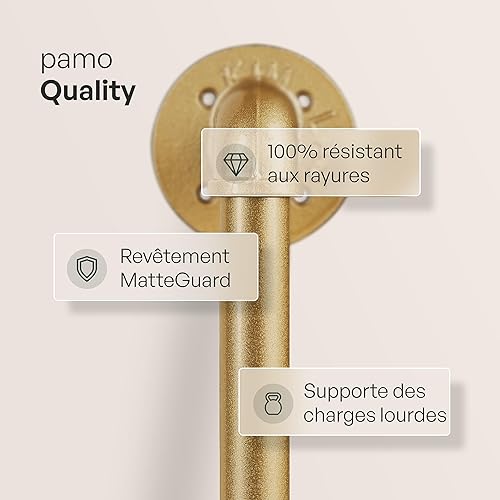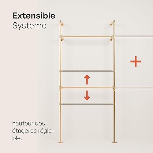 pamo penderie murale - capacité de charge 200 kg - penderie ouverte ou porte-manteau en métal doré industriel fabriqué à partir des tuyaux d'eau