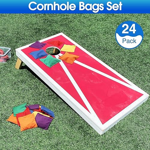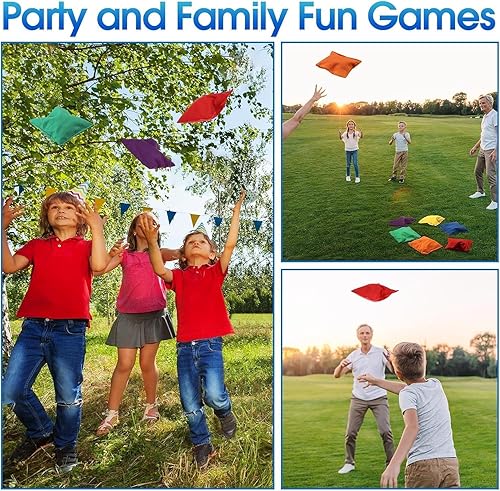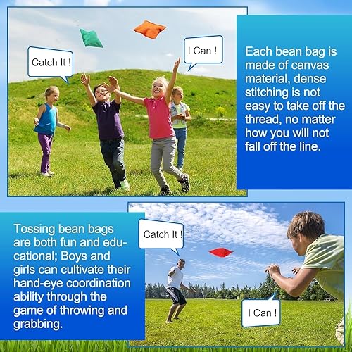 Lot de 24 poufs Cornhole à lancer - En nylon - 15 x 15 cm - Sac de rangement étanche - Avec sac de transport - Pour enfants - PE - Pour l'éducation sensorielle du sport