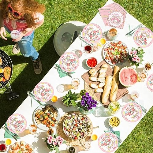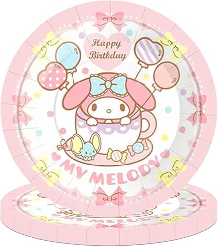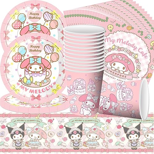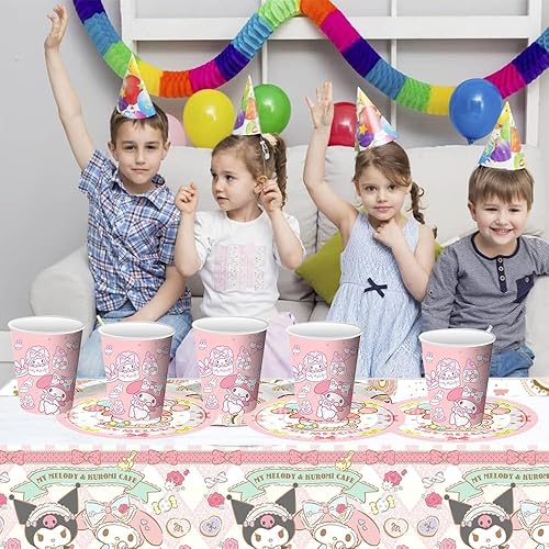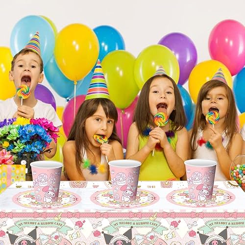 Kuromi Sanrio Vaisselle de fête pour 20 invités - Doyomtoy Décoration de fête d'anniversaire, Décoration de fête de Château de Princesse Comprend Assiette,Gobelets en Papier Serviettes Nappe