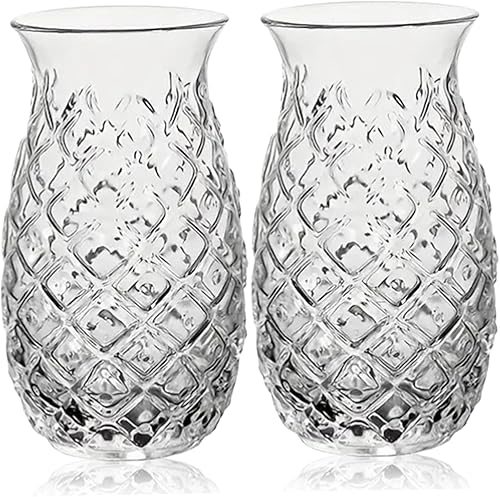Ensemble de 2 verres à ananas, ensemble de verres à cocktail 16 oz, tasses à ananas transparentes, verres à boire créatifs jaunes en relief pour vin, le whisky, le jus, passent au lave-vaisselle
