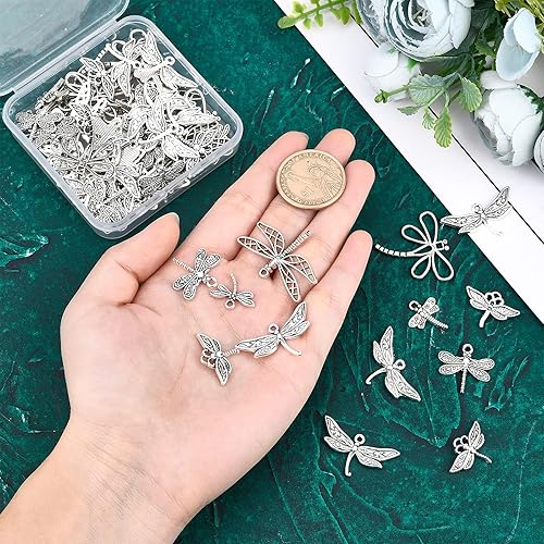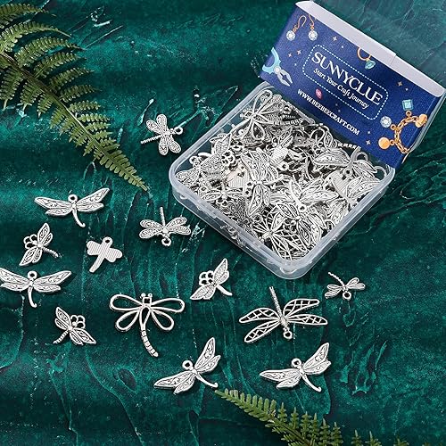 SUNNYCLUE 1 BOÎTE 70 Pcs 7 Style Libellule Charmes en Vrac Papillon Pendentifs Animal Volant Insecte en Acier Inoxydable Charme pour DIY Fabrication de Bijoux Bracelets Colliers Artisanat
