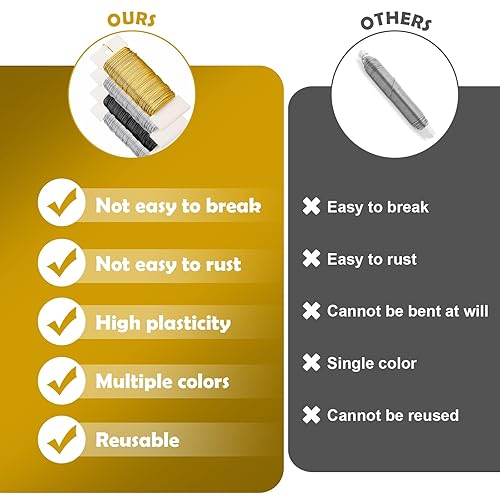 GIBOHOM 4 PCS Fil de Fer Souple Loisir Créatif 50 m X 0,35 mm ø, Durable Résistant à la Rouille et Ternissement, pour Artisanat, Fabrication de Bijoux, Art Floral