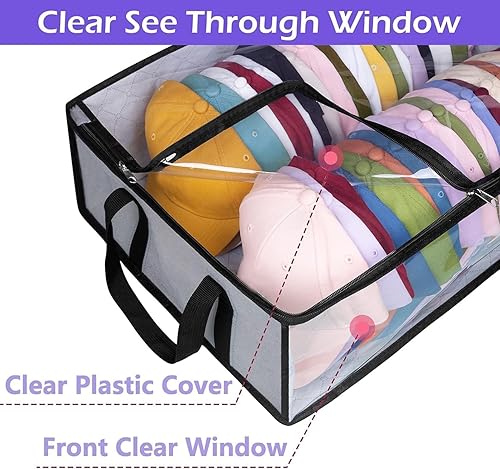 MISSLO Boîte de rangement pour casquette de baseball, peut contenir jusqu'à 40 chapeaux, large organisateur de chapeaux pour placard, sac pliable pour casquettes, gris