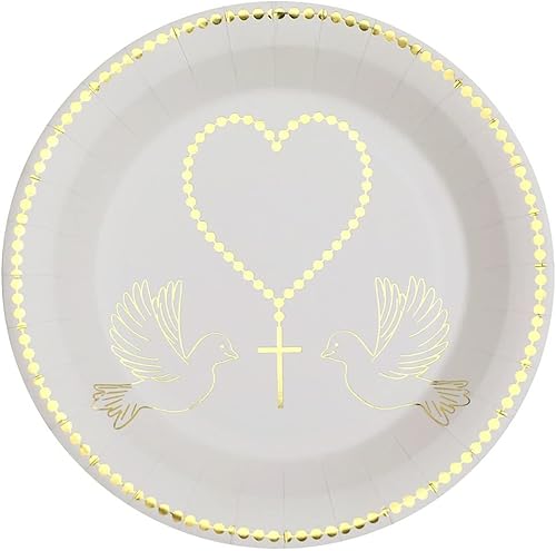 Santex - 10 Assiettes Communion Carton 22.5CM Blanc Or