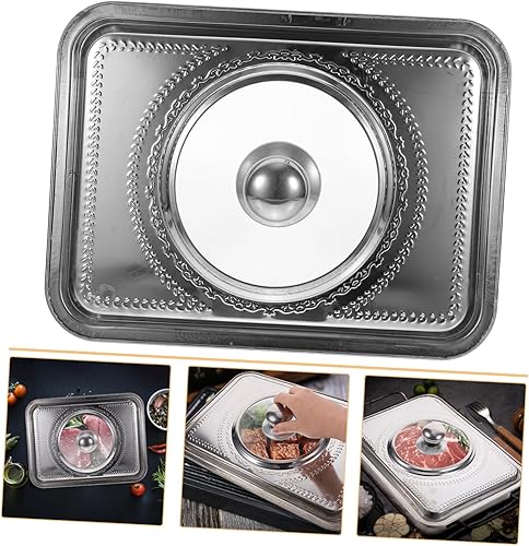 HOLIDYOYO Couvercle De Plateau De Cuisine À Bords Arrondis Protecteur De Plat En Acier Inoxydable Pour Barbecue Et Buffets