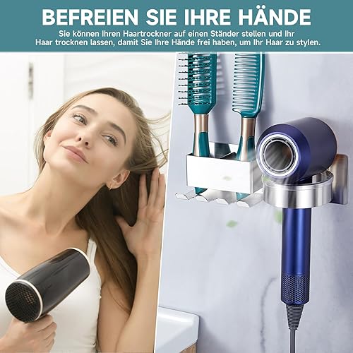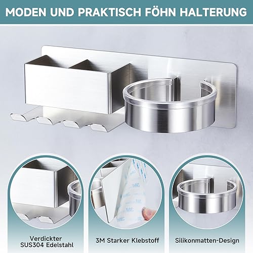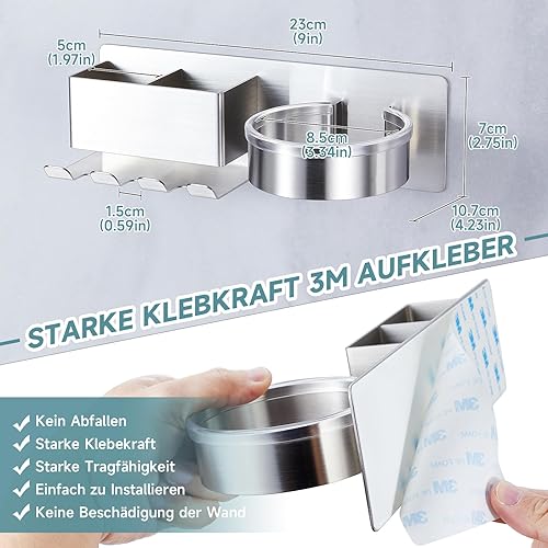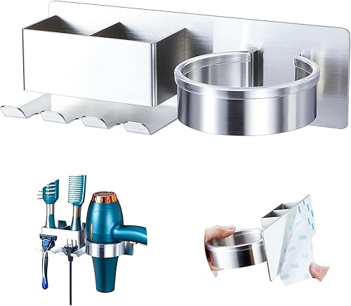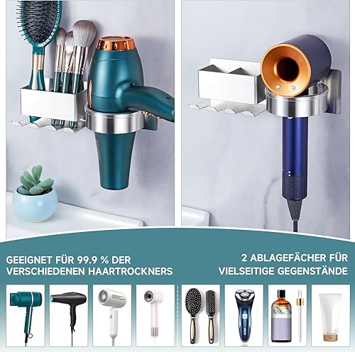 YYBO Porte Seche Cheveux Mural, Support Seche Cheveux avec Range-Câbles et 2 Compartiments de Rangement, Acier Inoxydable Porte seche Cheveux sans percage pour Salle de Bain, Hôtel, Salon