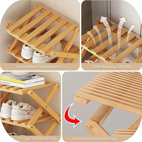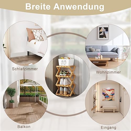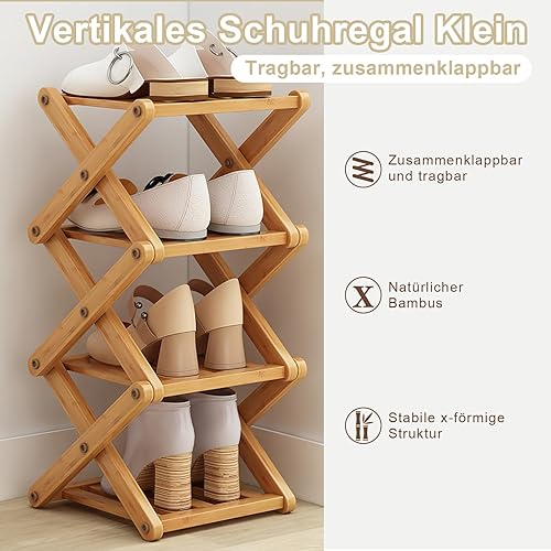 ZYNERY Étagère à chaussures pliable en bambou - Petit format vertical - 4 niveaux - Pour entrée, chambre à coucher, coin