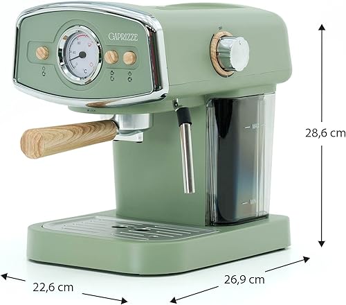 Machine à Café Espresso Caprizze Kai 1050W 15 Bars Semi-automatique Capacité 5 Tasses de Café avec Vaporisateur Vert Mat