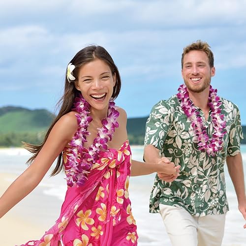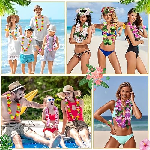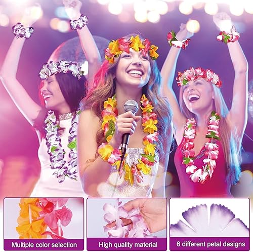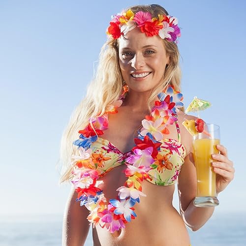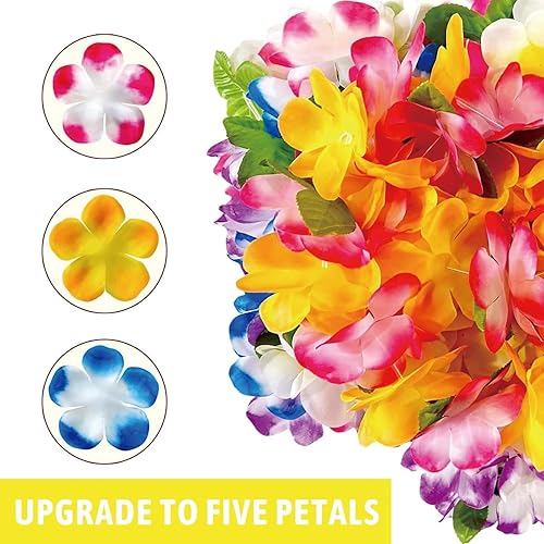 Collier Hawaien Fleurs, 24 PCS Collier de Fleurs Hawaienne, Collier Àfleur Tahitien Décoration Tropicale, Guirlande Fleurs Hawaienne pour Diplômé Beach Party Anniversaire Mariage Carnaval Deco