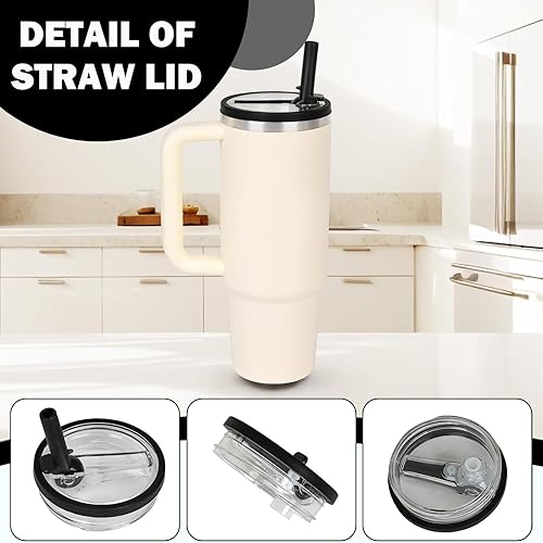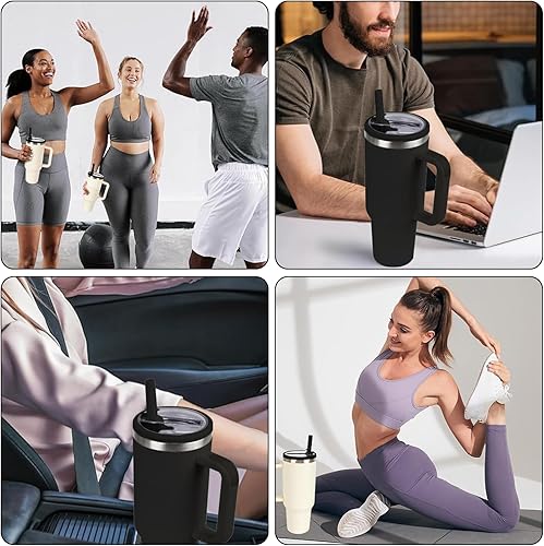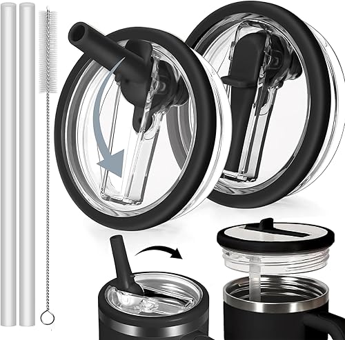 Couvercle Cup Etanche 40 Oz Couvercle de Tasse Anti-Poussière Et Anti-Fuite Avec Paille Réutilisable Couvercle Paille Adapté aux Tasses D'once Verres Accessoires de Couvercle de Tasse D'eau (Noir)
