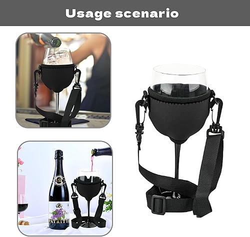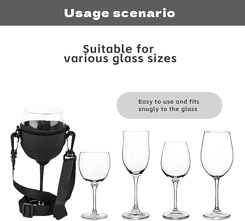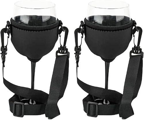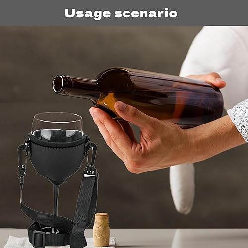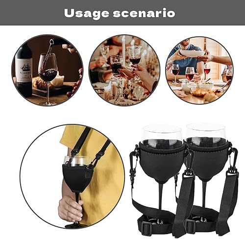 LUMOOM Lot de 2 porte-verres à vin à suspendre - En tissu - Portables - Idéal pour fête du vin, mariage, anniversaire, fête, pique-nique - Noir