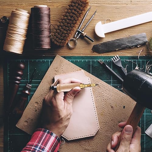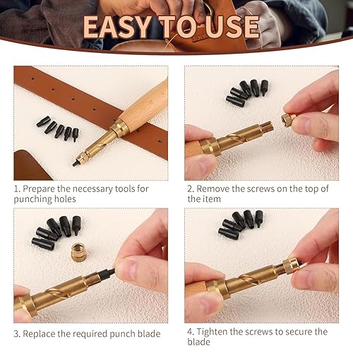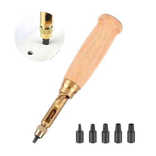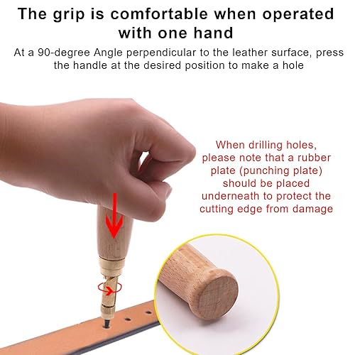 Fleymu Outil de Perforation Automatique en Cuir et Papier, Poinçon à Trou 6 Tailles (1,5-4mm), Poignées en Bois, 135 mm Poinçon Central Automatique, pour Cuir, Papier, DIY
