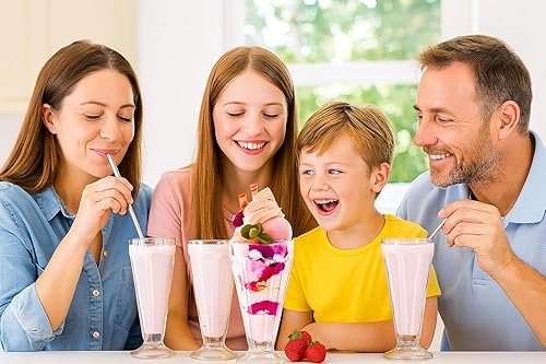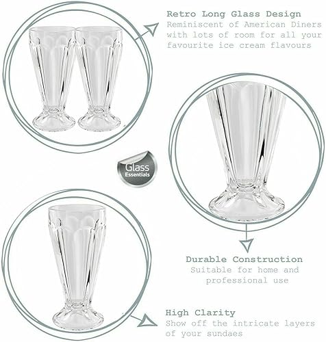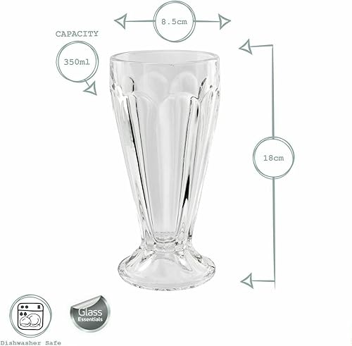Celino® Lot de 4 verres à milkshake en verre à dessert, sundae, glace, soda de style américain – 350 ml