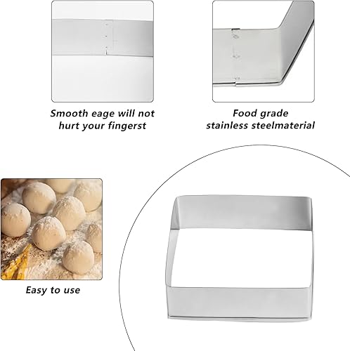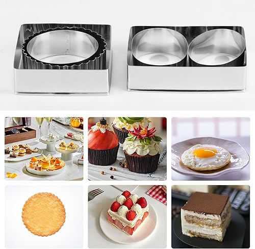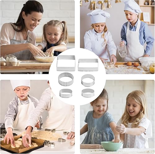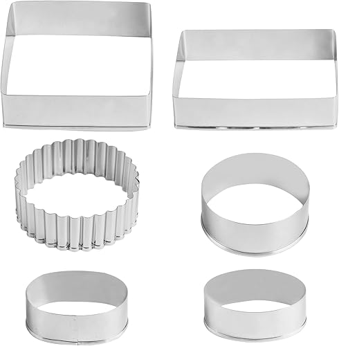 Lot de 6 emporte-pièces en acier inoxydable pour la pâtisserie, carrés, rectangulaires, géométriques, ronds, anneaux de cuisson en métal pour pâtisserie, biscuits (6 formes)