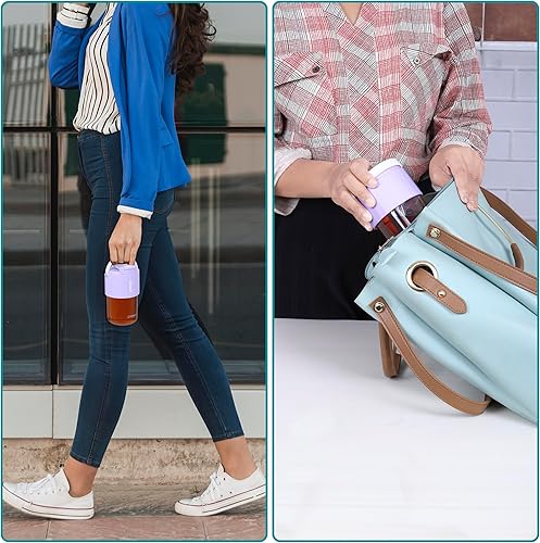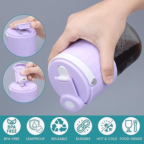 BELLE VOUS Mug Paille Violette en Plastique avec Couvercle - Gobelet 400 ml Sans BPA - Anti-Fuite à Paroi Épaisse pour Café Glacé, Thé, Jus, Eau & Boissons Chaudes ou Froides