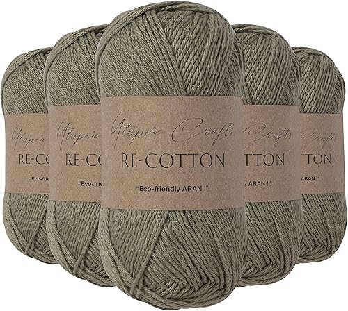 Utopia Crafts Re-Cotton Lot de 5 pelotes de fil à tricoter de 100 g - Olive Haze