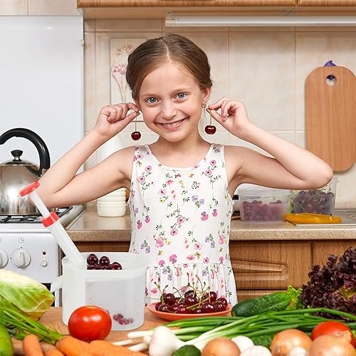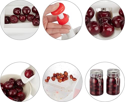 Relaxdays 10025516 Dénoyauteur de cerises avec ventouse en plastique et lame en acier inoxydable Blanc/rouge 18/8