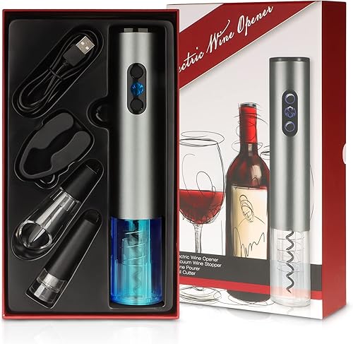 Tire Bouchon Électrique Rechargeable, Boite Cadeau avec Ouvre-Bouteille Automatique, Coupe-Capsule, Aérateur de Vin, Bouchon à Vin
