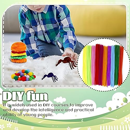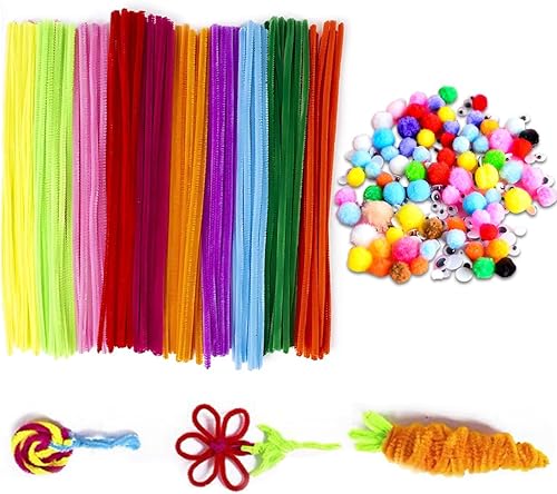 SULIUDAJI 100 Pièces Fil Chenille, 10 Couleurs, Chenille Loisir Creatif avec 80 Yeux Branlants Autocollants, Craft Pompons Multicolores Rondes, Métal, 6 mm, Multicolore, SUL2408AMH119