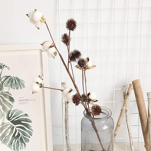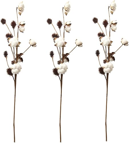 Aisamco Paquet De 3 Tiges De Coton Fermes Décoration Florale Pics Rustique Style Remplisseur De Vase Rustique Coton Branches 68cm par Tige Décoration Fleur
