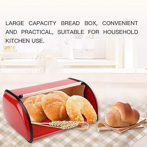 Natudeco Boîte à Pain Grande Capacité Conteneur à Pain Porte-pain En Métal Boîte De Rangement Pour Pain Garde-pain Pour Comptoir De Cuisine Stockage Rouge(rouge)