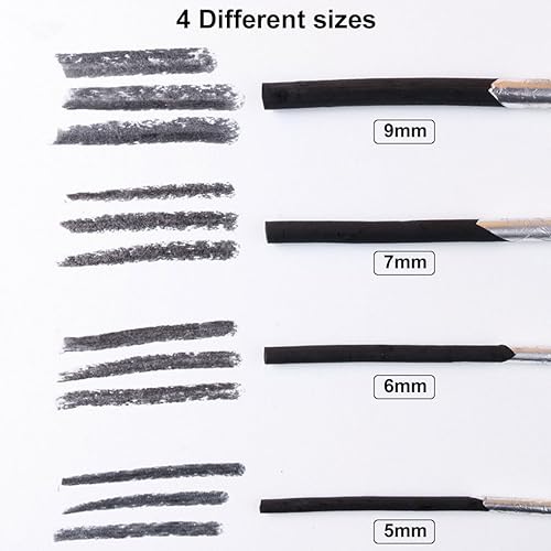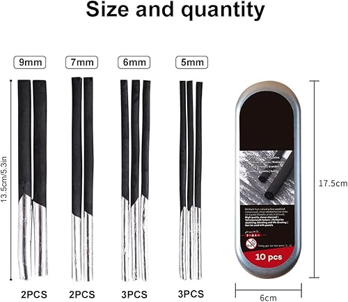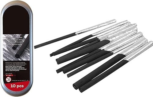 Crayons Fusain, Crayons de Croquis, Crayons Dessin Noir, 10 Pièces Willow Charcoal, pour Le Dessin, Esquisse, Ombrage, pour Des Dessins Impressionnants, 4 Tailles Différentes(9mm, 7mm, 6mm, 5mm)
