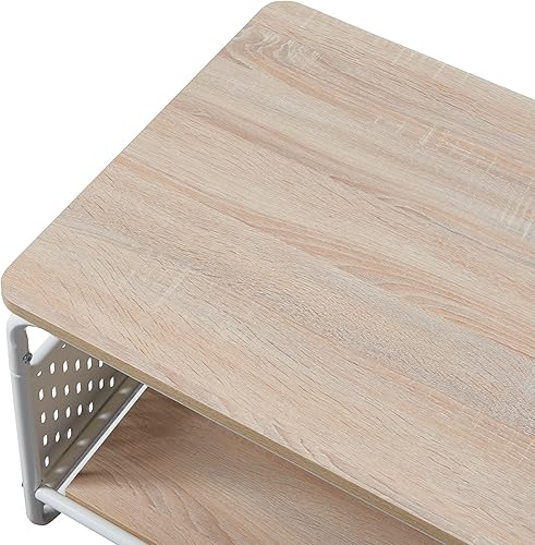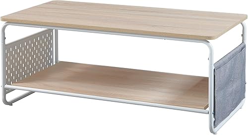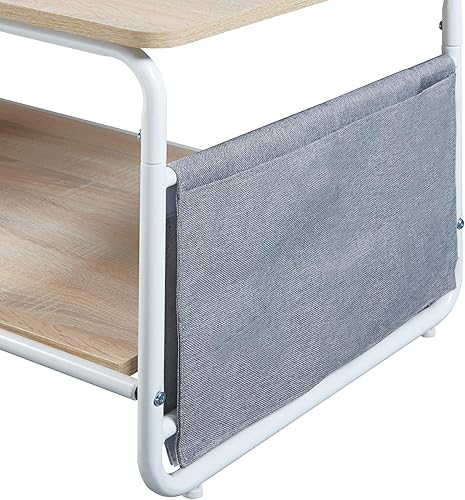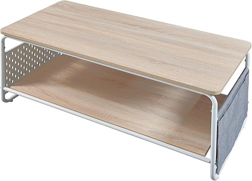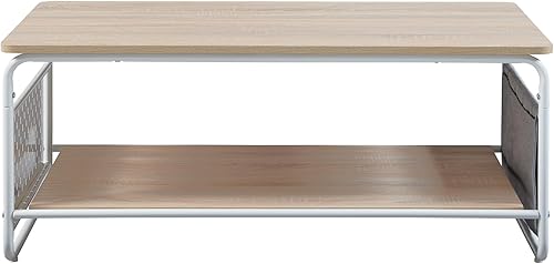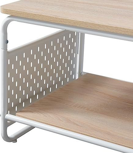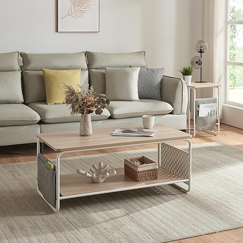 [en.casa] Table Basse Style Intemporel Table d'Appoint Design avec Surface de Rangement Acier Panneau de Particules Polyester 100 x 50 x 43 cm Blanc Effet Chêne Gris