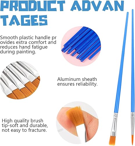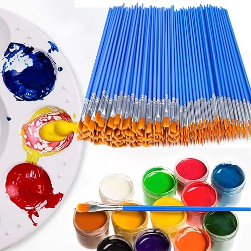 YUESIKJ Lot de 60 pinceaux, 30 pinceaux plats et 30 petits ronds pour la peinture d'art et les détails