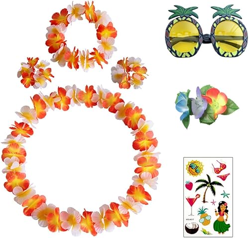7 Pièces Colliers de Fleurs Hawaïennes Hula Luau Collier Bracelet Bandeau Hawaïen Colliers Fleurs Hawaïen Hawaiian Fleurs Guirlande Thème Décorations de Fête pour Luau Hawaiian Plage Mariage Pique
