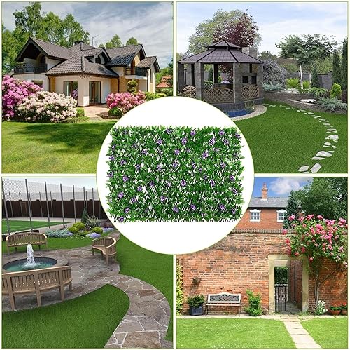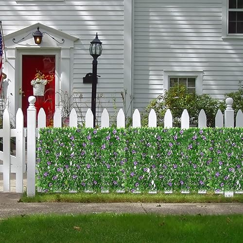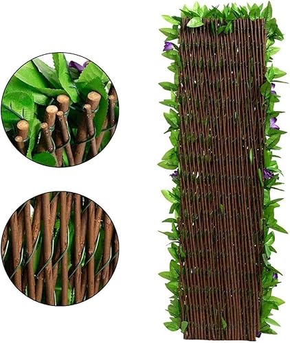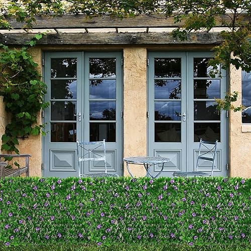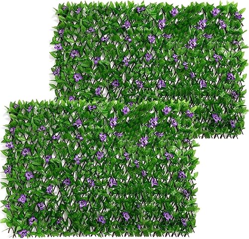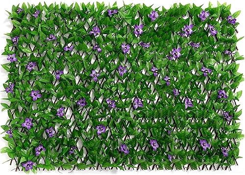 Panneaux de treillis de jardin extensibles 200x40cm, treillis extensible avec feuilles artificielles, clôture de jardin extensible avec lierre artificiel et fleur violette, décoration de fond de verdu