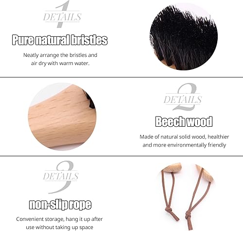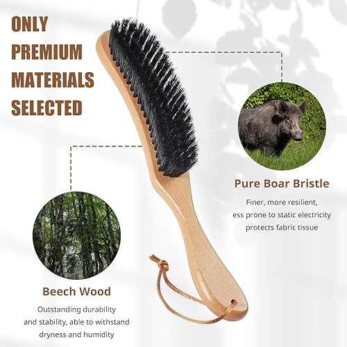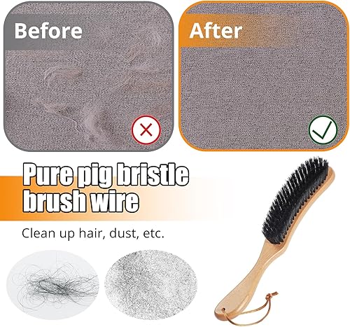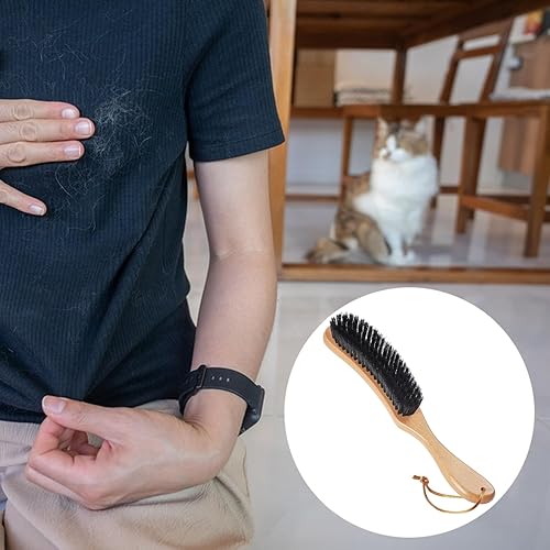 OWLMATE Brosse à vêtements, brosse magique en laine, brosse pour coussins, vêtements en daim et poils d'animaux - Grande poignée en bois de hêtre