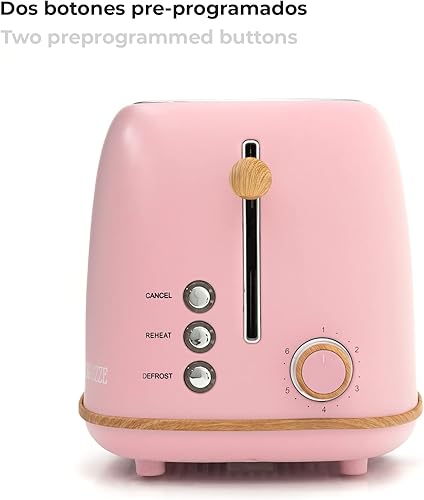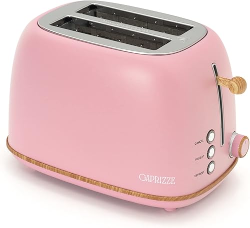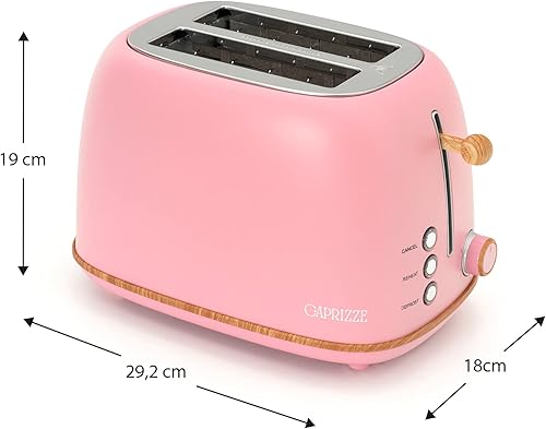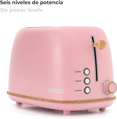 Grille Pain Caprizze Kaito avec Double Fente Extra Large 6 Niveaux de Grill Design Vintage avec Effet Bois Rose Mat